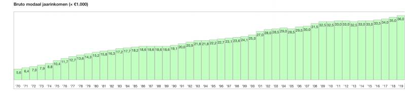 Het inkomen in 2018 in Nederland is volgens het CPB €35.000.
